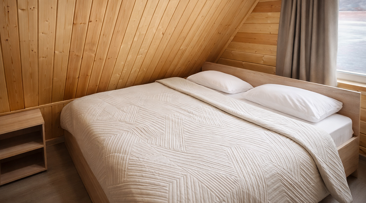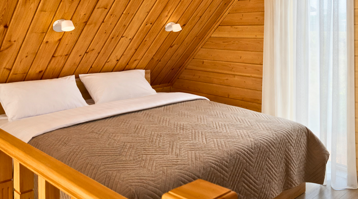 Просторный двухуровневый номер с двуспальной кроватью. В номере есть всё необходимое для комфортного проживания: удобная мебель, телевизор, телефон, шкаф для одежды, ванная комната и санузел. Завтрак включен в стоимость.