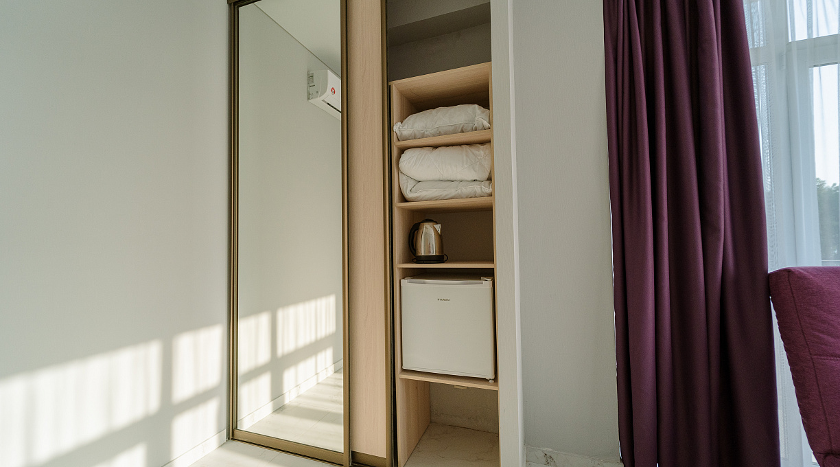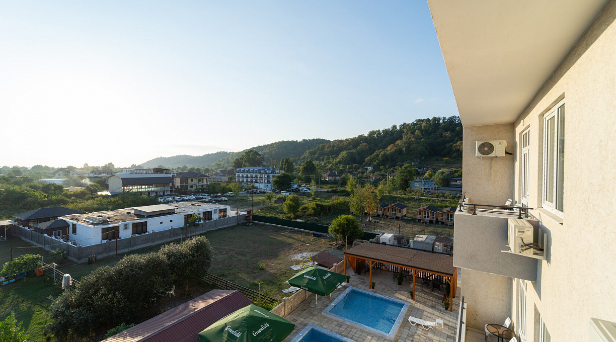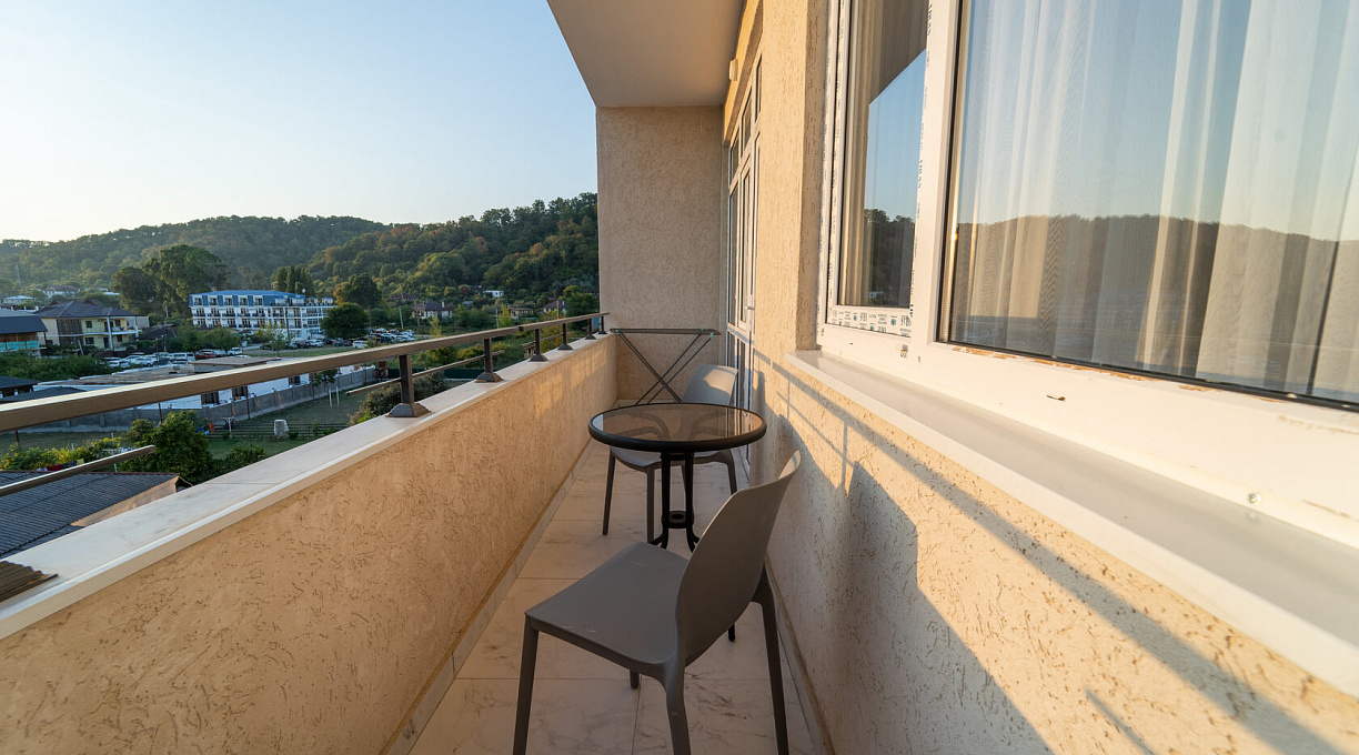 Номер с балконом. Вид на сосновую рощу или горы. В каждом номере фен, телевизор, кондиционер, холодильник, чайник, сейф. Ванная комната с душем и банными принадлежностями. В номере две кровати или одна большая кровать.