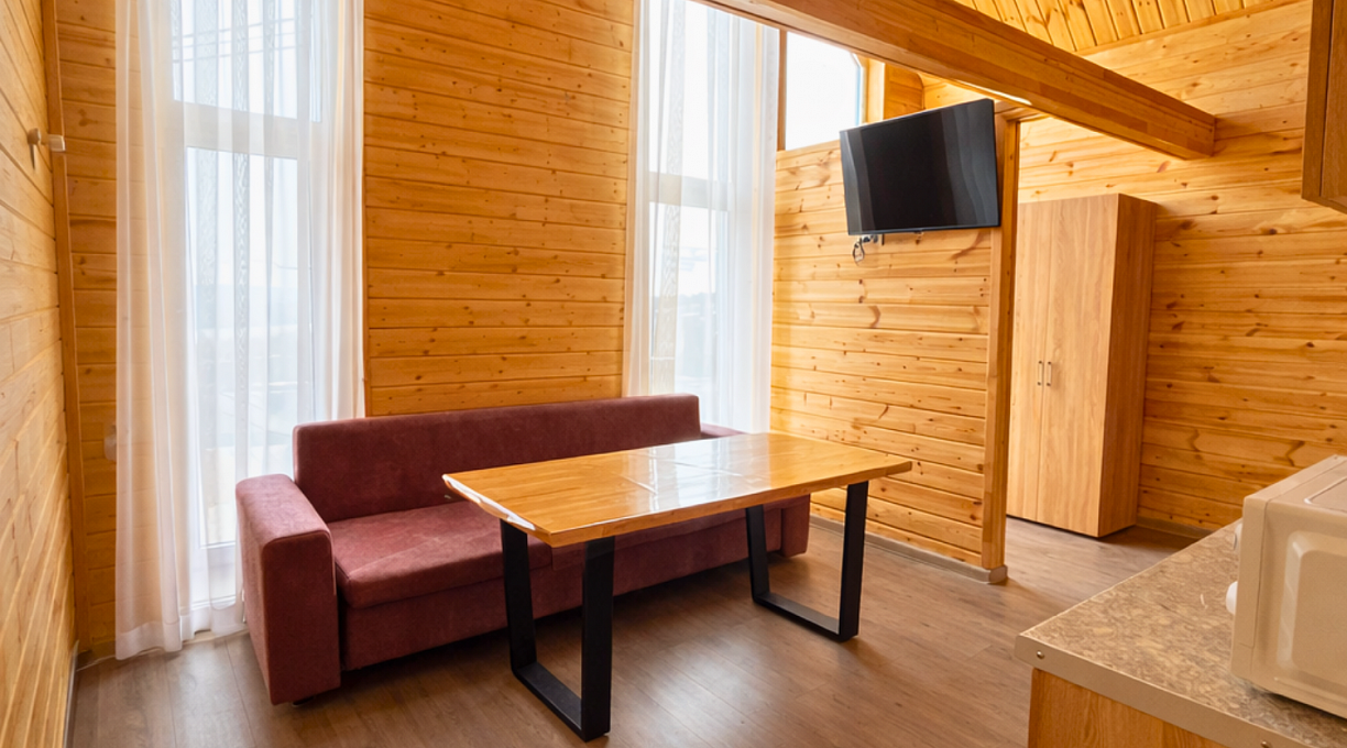 Вас ждут уютные домики с индивидуальной мангальной зоной, прокатом спортивного инвентаря и организацией рыбалки!