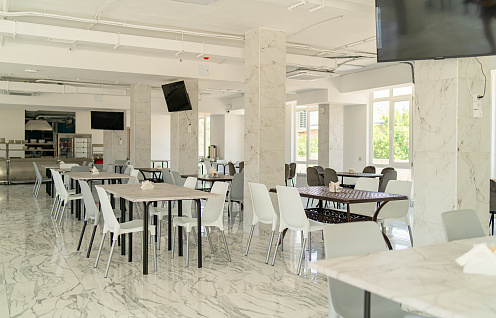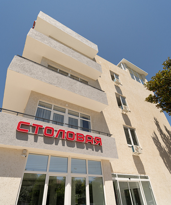 На территории отеля расположена собственная столовая с европейской кухней. Во внутреннем дворе - зона отдыха с беседками и мангалом и два подогреваемых бассейна для взрослых и детей!